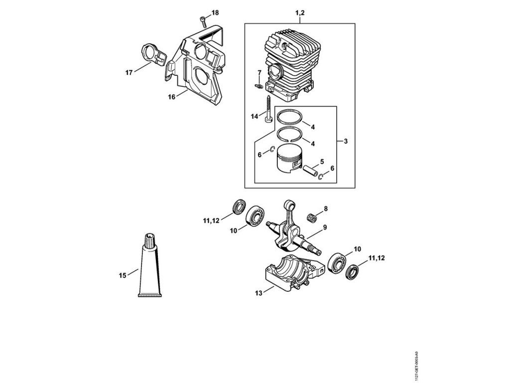 PRODUCT SET / Valec / Náhradný diel číslo: 1, Valec s piestom Ø 46 mm, obsahuje diely č.: 3,4,5,6,7,14