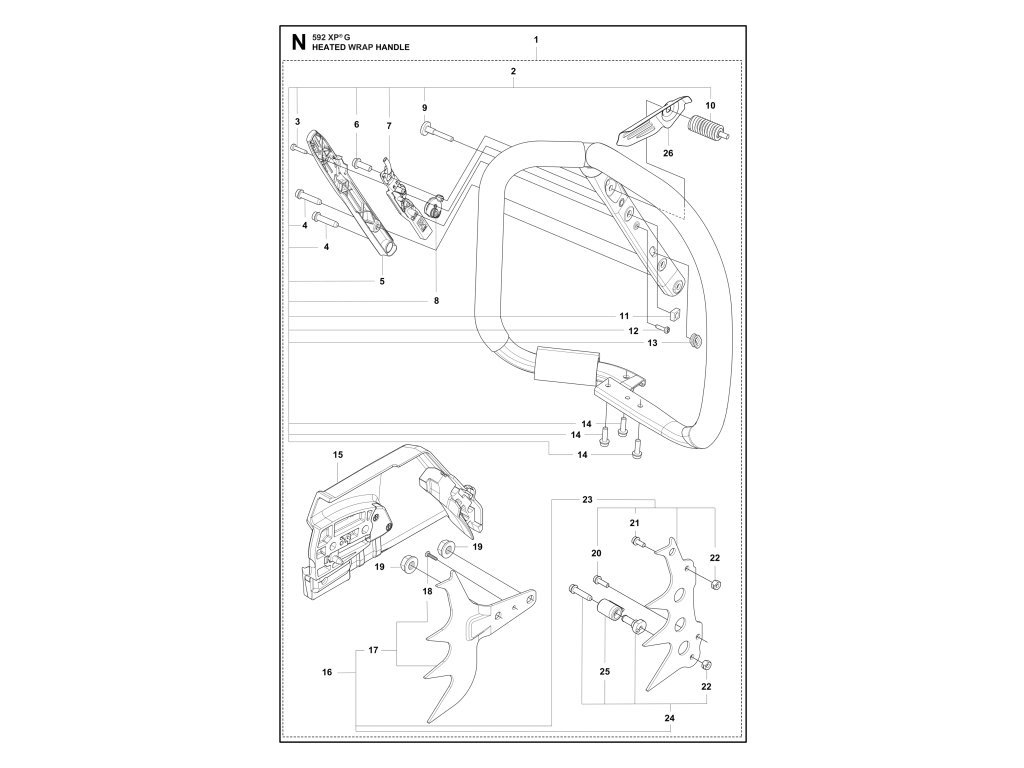 592 XP® G / Vyhrievaná rukoväť / Náhradný diel číslo: 15, Kryt spojky - zostava