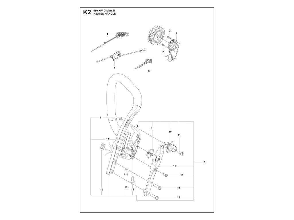 550 XP G Mark II / Vyhrievanie rukoväti / Náhradný diel číslo: 6, SYSTÉM RUKOVÄTE