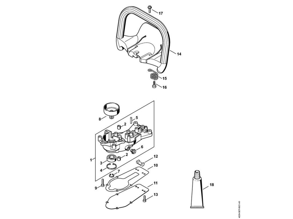 HS 45 2-MIX / X - prevodovka, rúrková rukoväť s ochranou rúk 2-mix / Náhradný diel číslo: 11, Veko prevodovky